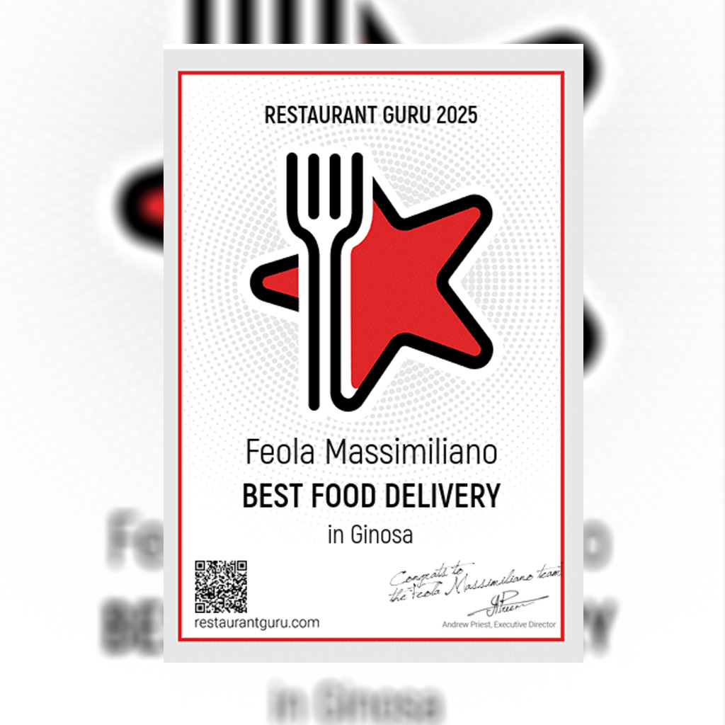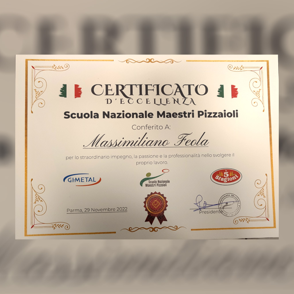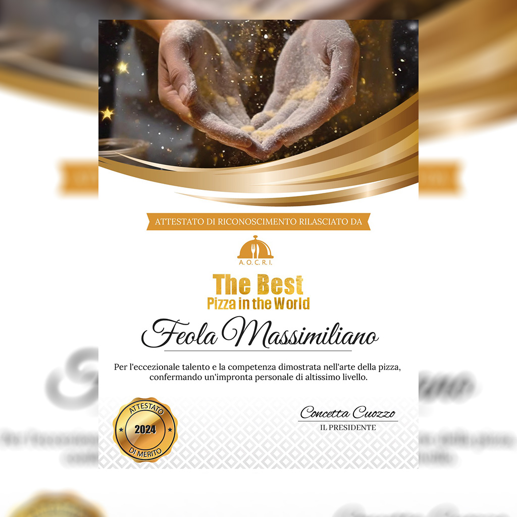 Premiata Pizzeria Napoletana, firmata Feola Massimiliano: qui la tradizione incontra la creatività. Impasti leggeri, ingredienti selezionati, sapori autentici che trasformano ogni pizza in un’esperienza da ricordare.
